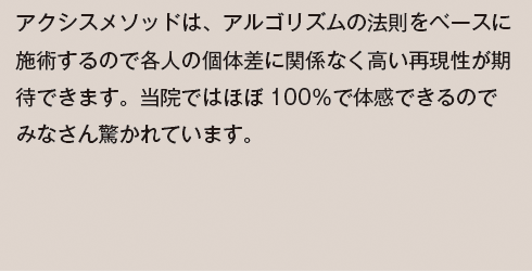 アクシスメソッドは、中心軸を作り出すことで、これまで誰も解決することができなかったこの壁にアプローチできる唯一のメソッドなのです。